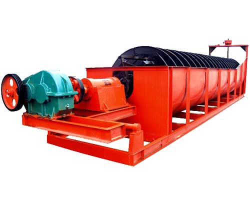 分級機的主要適用范圍 分級機廣泛適用于選礦廠中與球磨機配成閉路循環程分程分流礦沙,或用在重力選礦廠中來分級礦砂和細泥,及金屬選礦流程中對礦漿進行粒度分級,及洗礦作業中的脫泥、脫水等作業。該機具有結構簡單、工作可靠、操作方便等特點。分級機是是借助于固體粒大小不同,比重不同,因而在液體中的沉降速度不同的原理,細礦粒浮游在水中成溢流出,粗礦粒沉于槽底。由螺旋推向上部排出,來進行機械分級的一種分級設備,能把磨機內磨出的料粉級于過濾,然后把粗料利用螺旋片旋片旋入磨機進料口,把過濾出的細料從溢流管子排出。該機底座采用槽鋼,機體采用鋼板焊接而成。螺旋軸的入水頭、軸頭、采用生鐵套,耐磨耐用,提升裝置分電動和手動兩種。 分級機的主要工作流程 螺旋分級機借助固體顆粒的比重不同,因而在液體中沉淀的速度不同的原理,進行機械分級的一種設備。能把磨機內磨出的料粉級于過濾,然后把粗料利用螺旋片旋片旋入磨機進料口,把過濾出的細料從溢流管子排出。