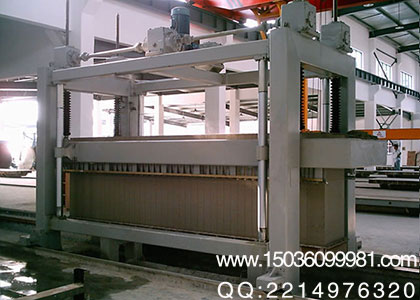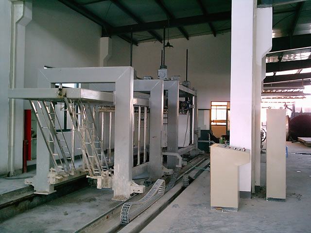 (2)坯體行走:預養好的坯體帶模空中翻轉90度,然后將坯體放在切割小車上或輥道上,由脫模機構脫去模框。坯體通過小車或輥道行走進行水平切割,切割好后坯體繼續前行至橫切位置定位,進行橫向切割,切割好后前行由行車吊走坯體。