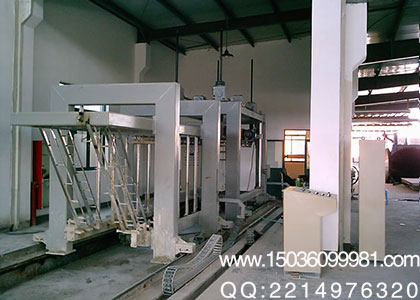 (1)小車行走:預養好的坯體帶模空中翻轉90度,然后將坯體放在切割機上,由脫模機構脫去模框。然后水平切割車進行水平切割,水平切割好后,橫切小車定位自上而下進行垂直切割,切割好后橫切小車復位,吊起坯體,水平切割車復位。